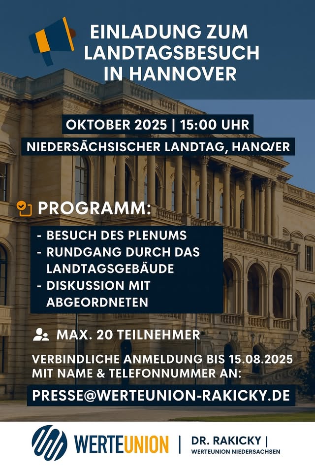Pressemitteilung WerteUnion Niedersachsen fordert konsequente Durchsetzung des Vermummungsverbots – Gleiches Recht für alle Versammlungsteilnehmer Hannover, 30. Oktober 2025 Der Landesverband Niedersachsen der WerteUnion kritisiert den