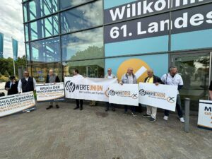 Osnabrück – Die WerteUnion Niedersachsen war mit einer klaren Botschaft vor Ort, als sich CDU-Delegierte in Osnabrück versammelten. Unter dem Motto „Was wurde aus den Wahlversprechen?“ stellte die WerteUnion zentrale Punkte zur Diskussion, die aus ihrer Sicht von der CDU-Spitze unter Friedrich Merz nicht erfüllt wurden.